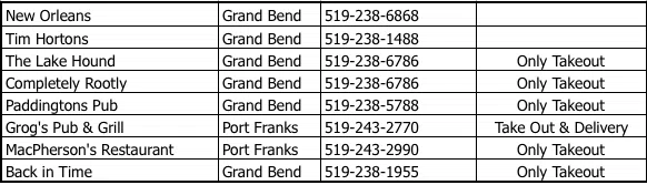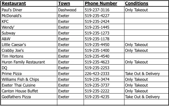 With drive-thru, take out and delivery options available, local restaurants are still offering your favourite meals…just take out style! SOUTH HURON LAMBTON SHORES